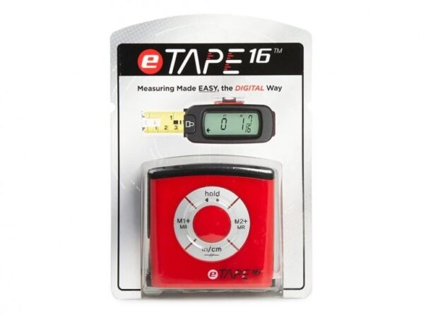 Simple, reliable, accurate. eTape16 is simple, It’s reliable, made of poly carbonate plastic so it is built to last, and accurate, no more second guessing, measure accurately the first time every time all functions are designed around the side with a button wheel.